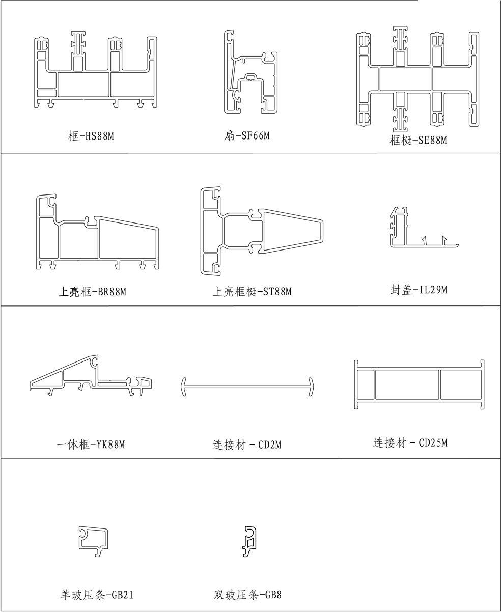 基本材料可应用白、通体黑白、共挤断桥铝型材。